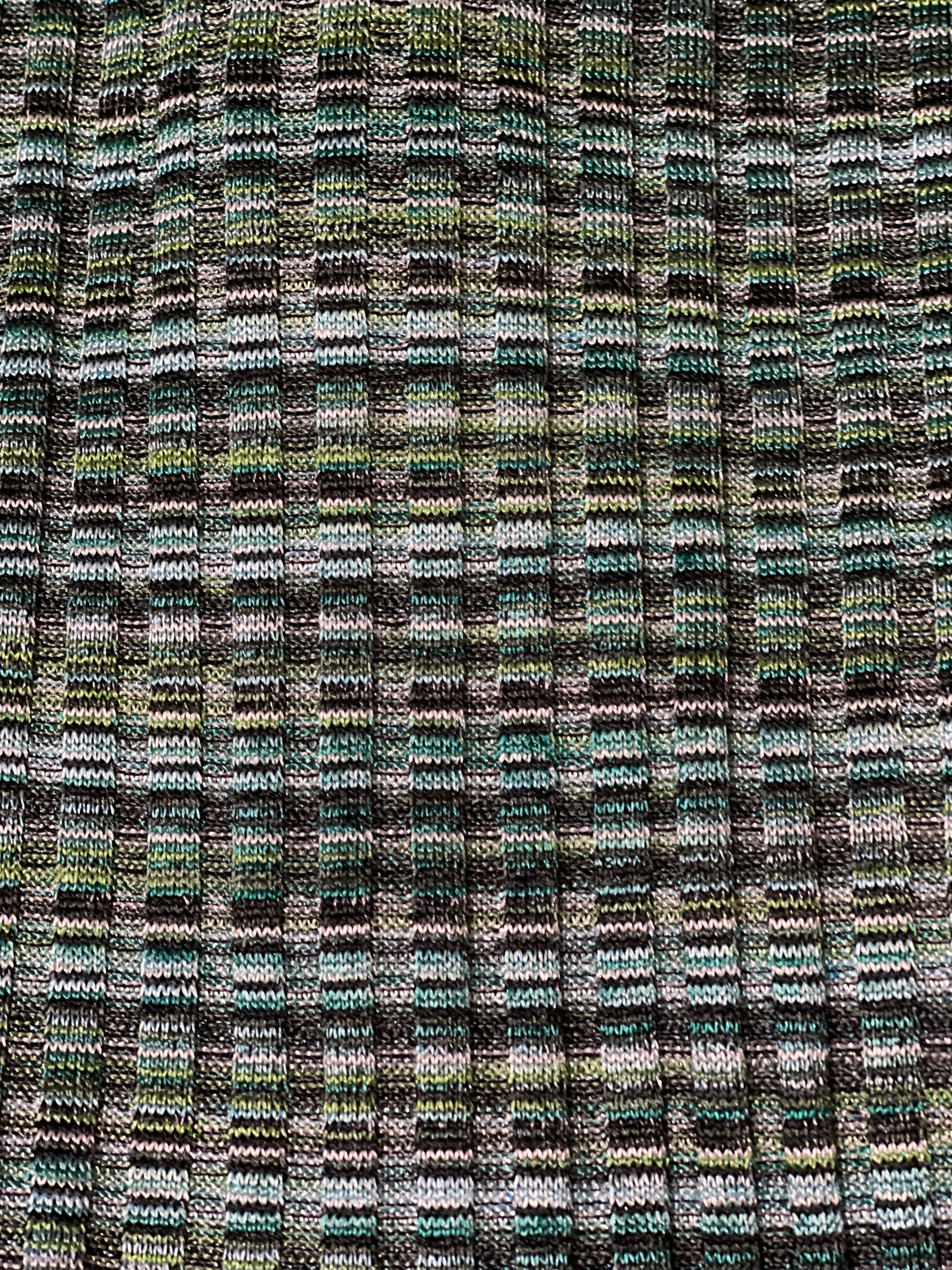 Shades of Green Striped Hues Ribbed Full length Sweater Dress. This fabric is Extremely Stretchy, Soft with Ribbed Details . Turtle neck with back Zipper for an easy slide on. Long sleeves with inside slit. Tall Girl Friendly.