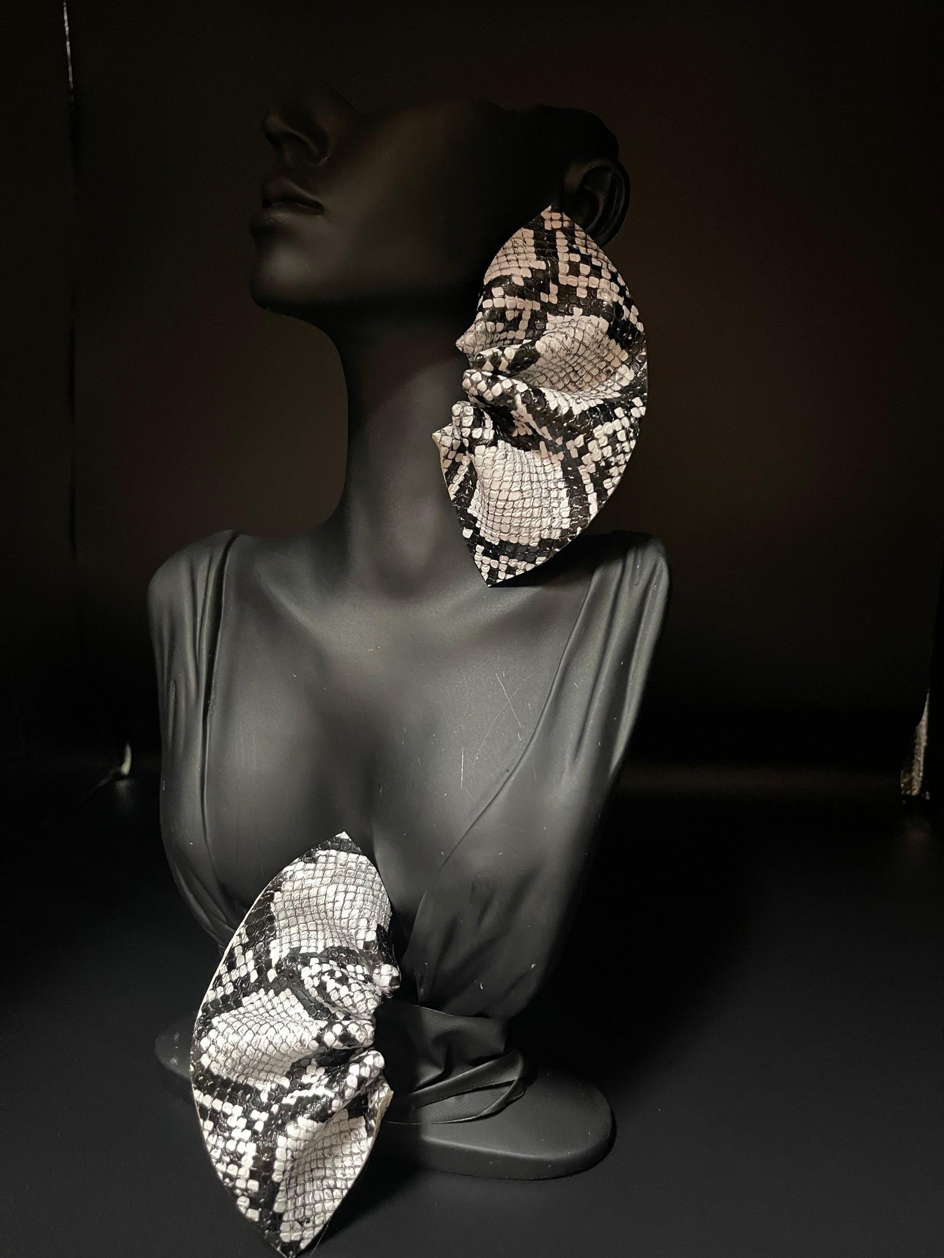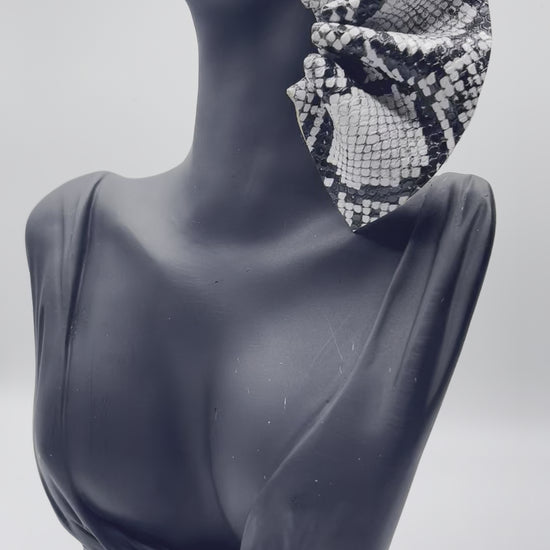 Black and White Faux Leather Snakeskin Earrings with Rippling Details. Lightweight.