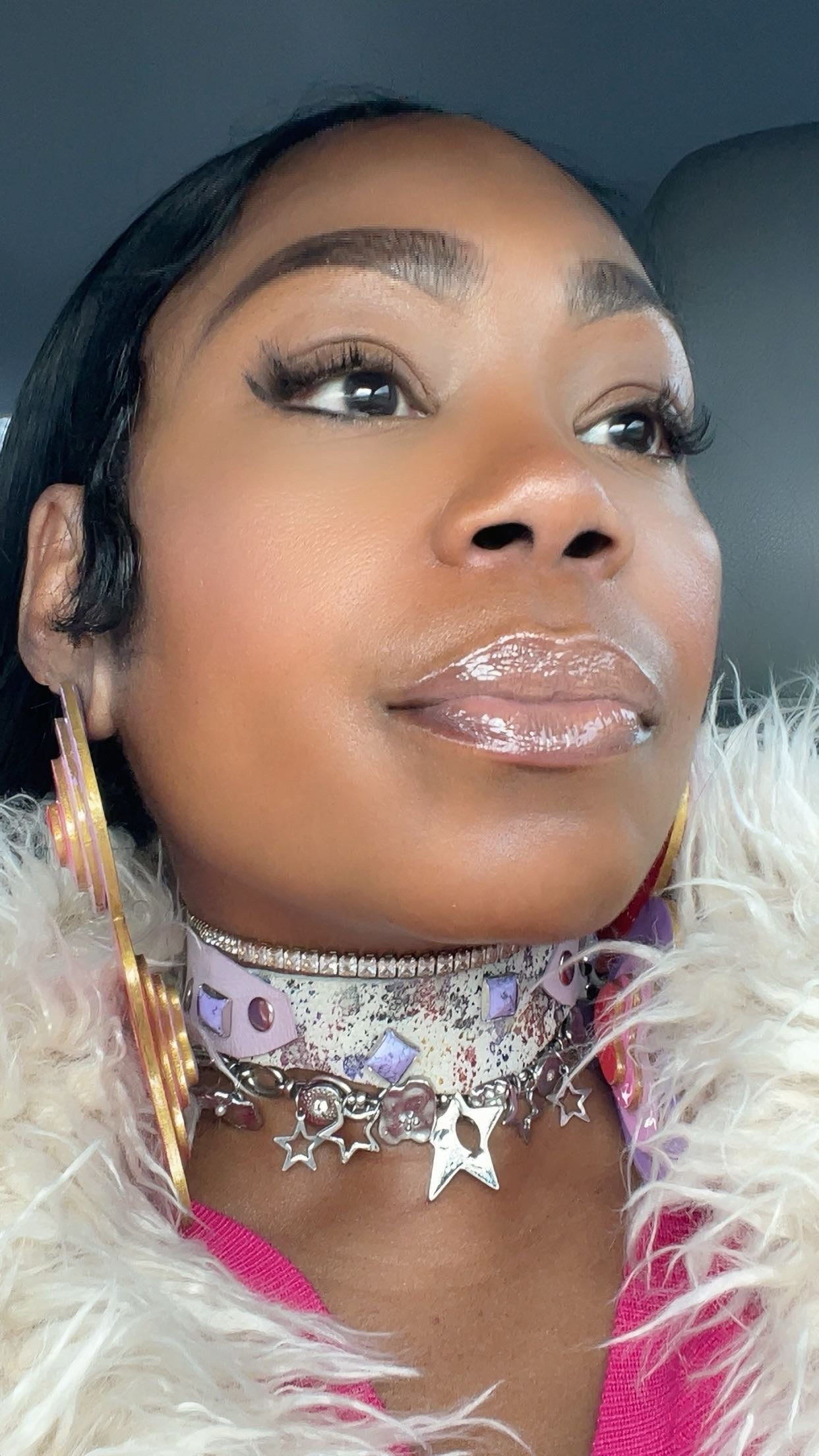 Leather/Suede Metallic Confetti Choker with Lilac Leather Attachments and Studded Details.