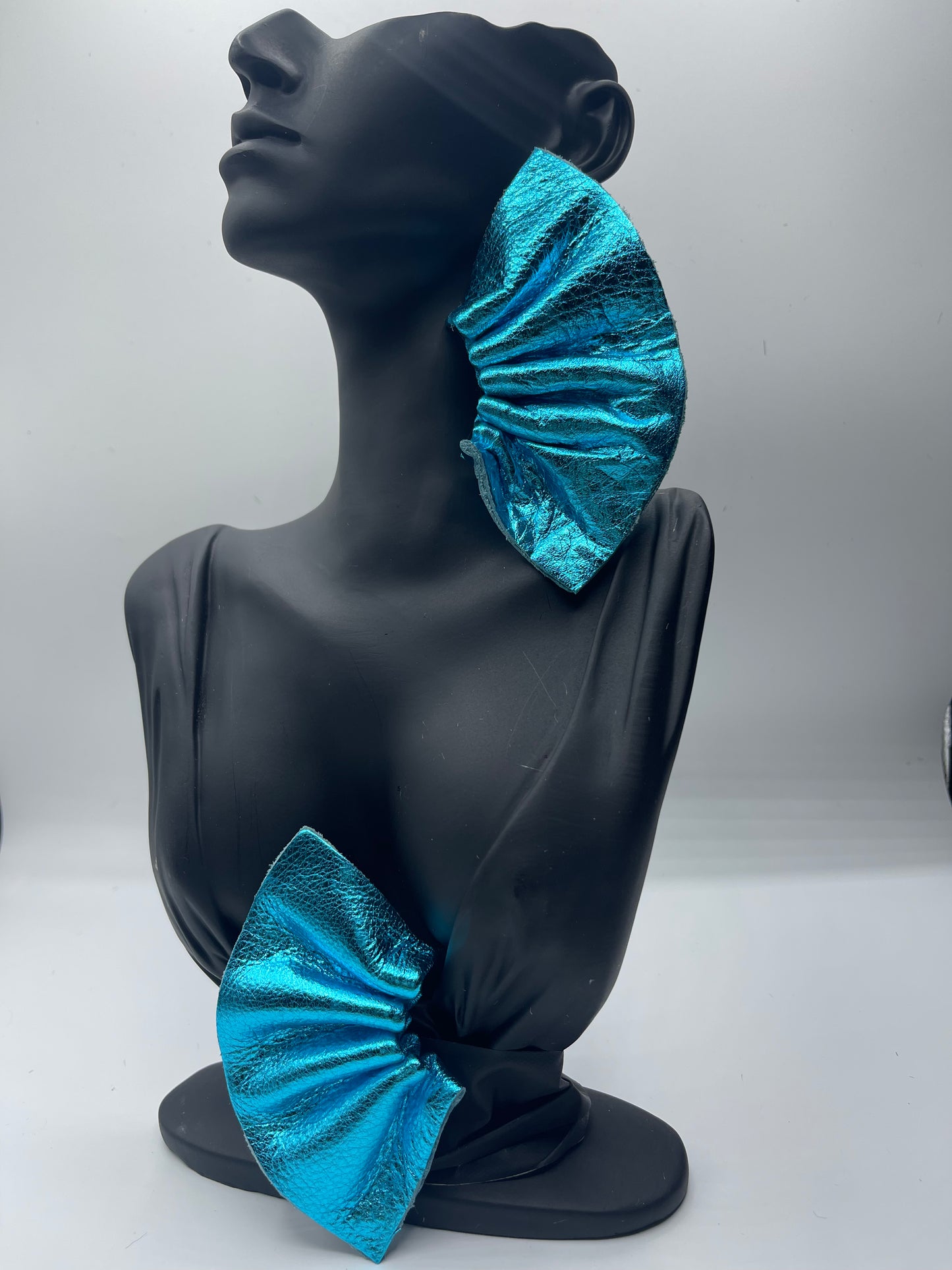 Turquoise Metallic Earrings with Rippling Details. Lightweight.
