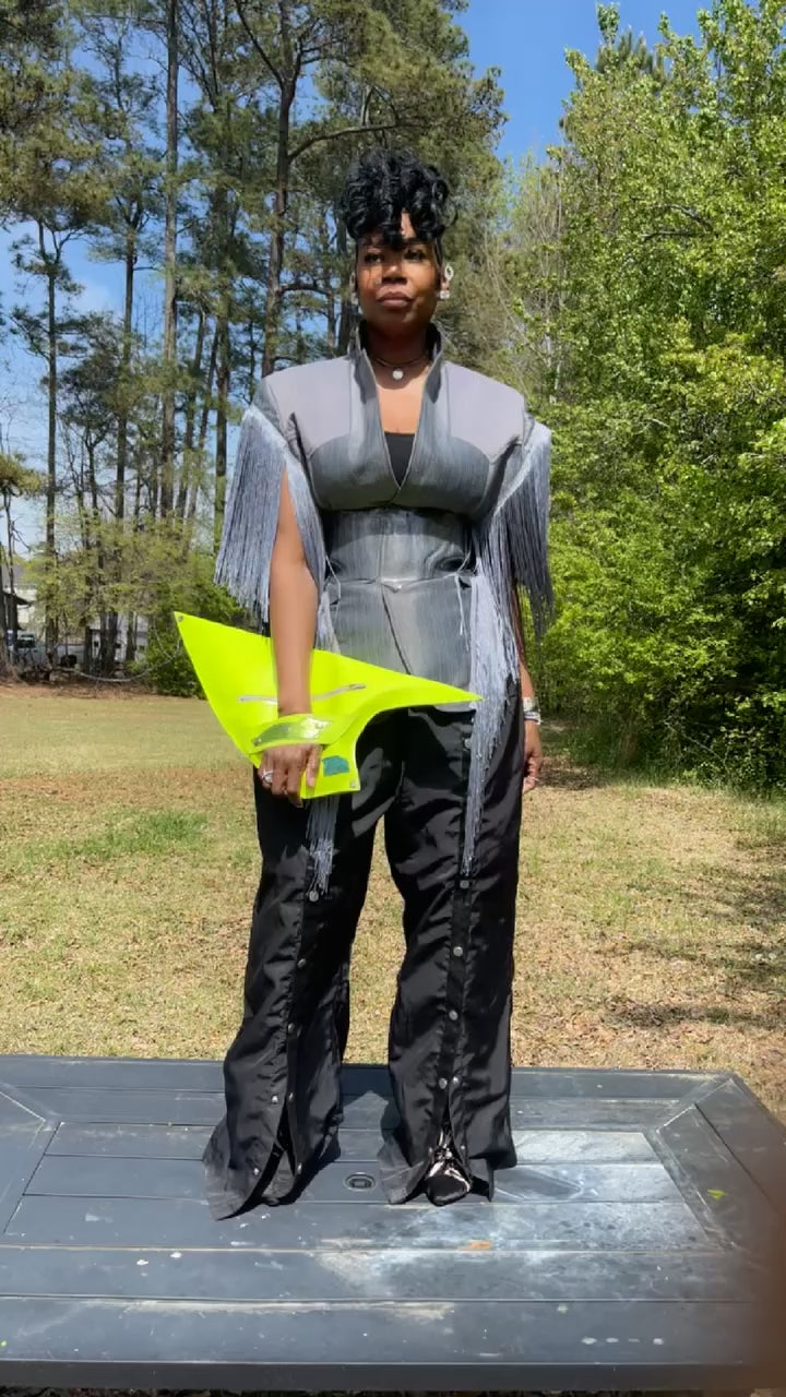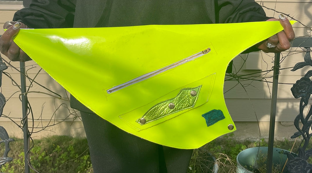 Neon Green Genuine Leather Oversized Geometric Shaped Clutch with Slide In Hand Accent.